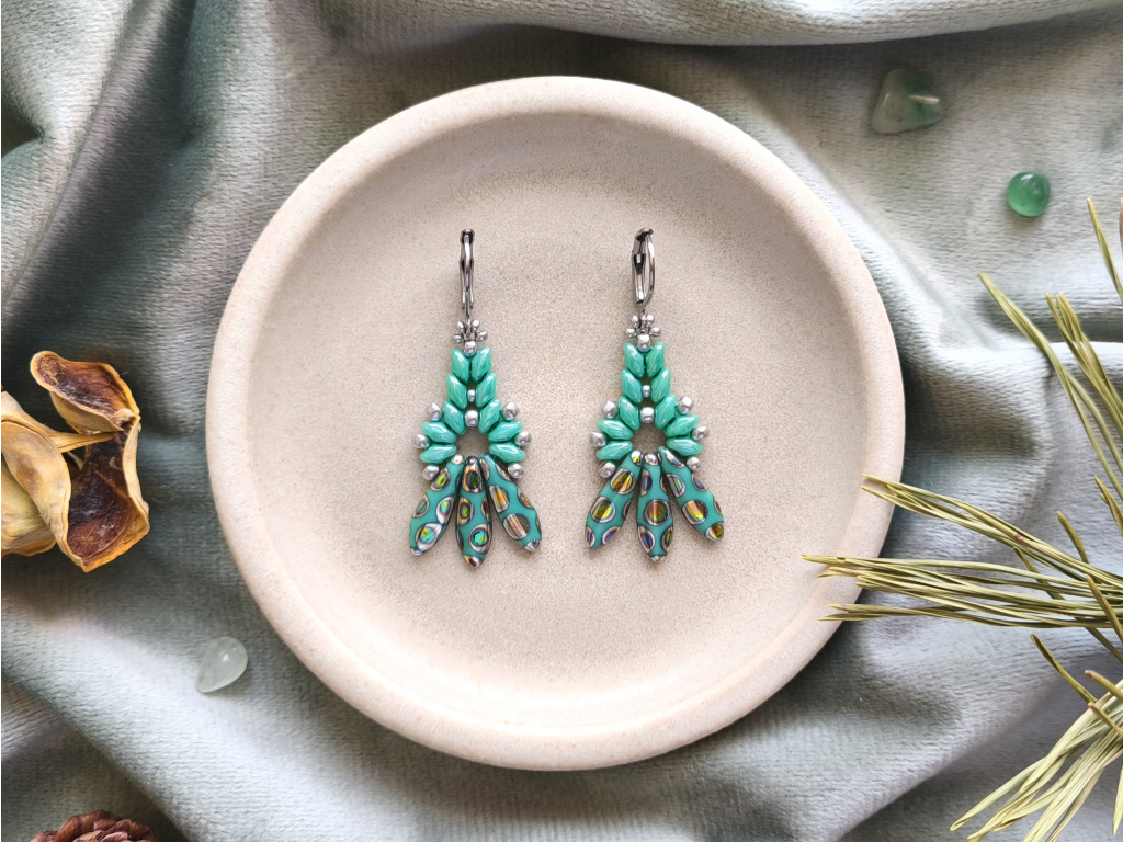 Materiál: Náušnice jsou ručně šité z kvalitních skleněných korálků a mají praktické zavírací háčky z hypoalergenní nerezové oceli.