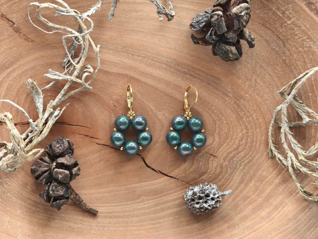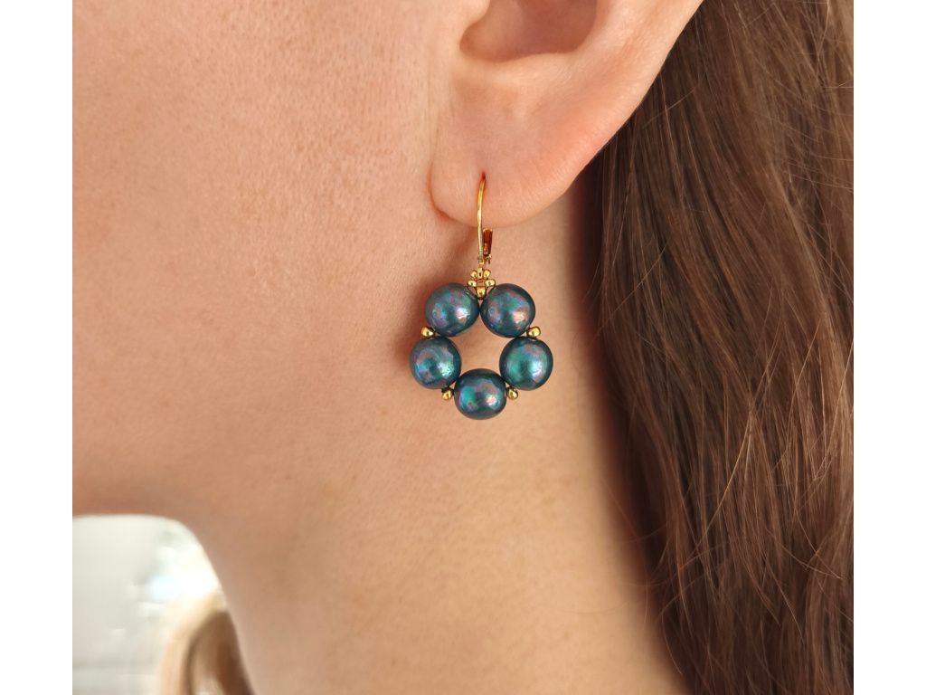 Náušnice jsou ručně šité z kvalitních skleněných korálků a mají praktické zavírací háčky z hypoalergenní nerezové oceli pozlacené 24k zlatem.